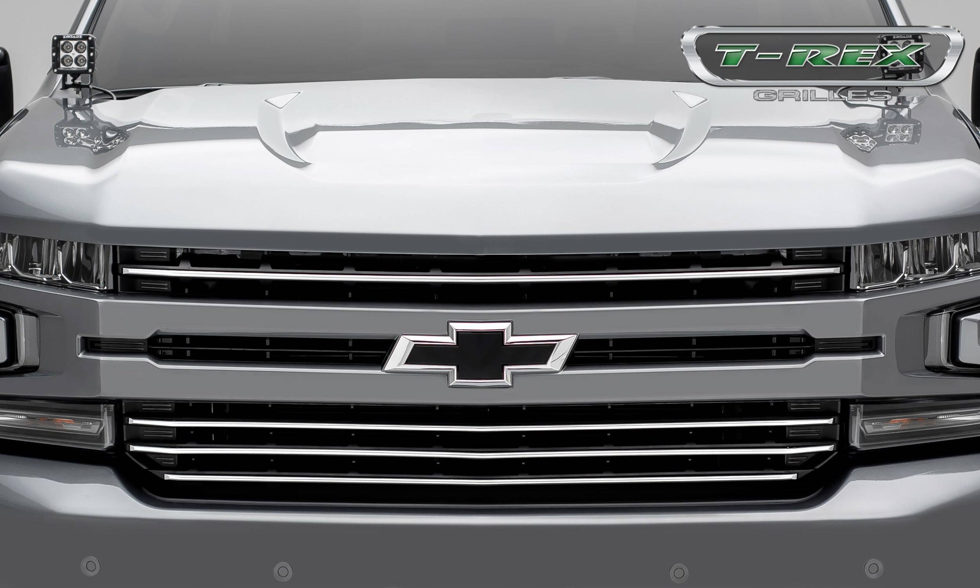 T-Rex 2019 Chevrolet Silverado 1500 Billet Grille, Horizontal Round, 4 Pc, Overlay (Silver Aluminum)