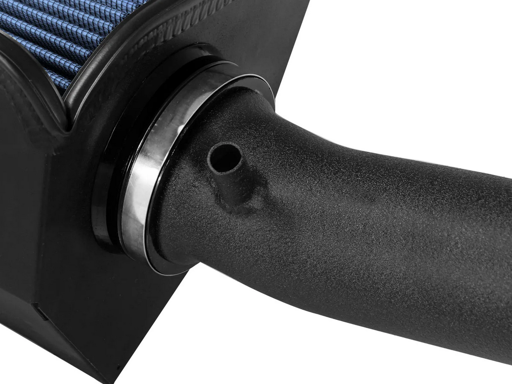 A 3" One-Piece Mandrel-Bent Wrinkle-Black Powder-Coated Intake Tube directs unrestricted airflow from the massive filter to the turbo for more horsepower and torque.
