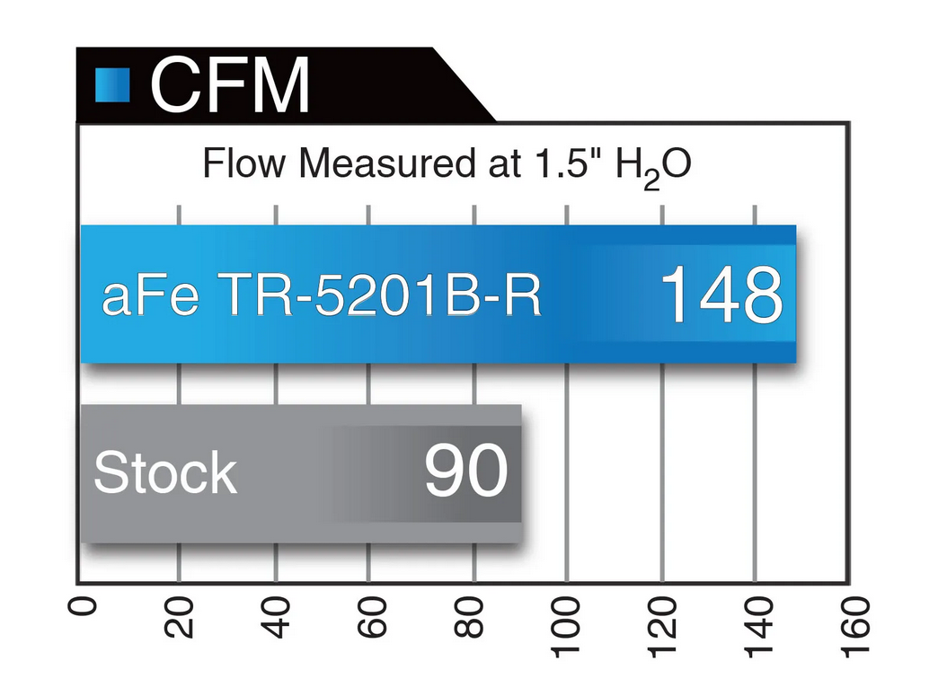 This intake system utilizes a pre-oiled, large 6" tall conical 360 degree radial flow performance air filter with 5-layers of progressive finer mesh cotton media providing maximum airflow and performance.