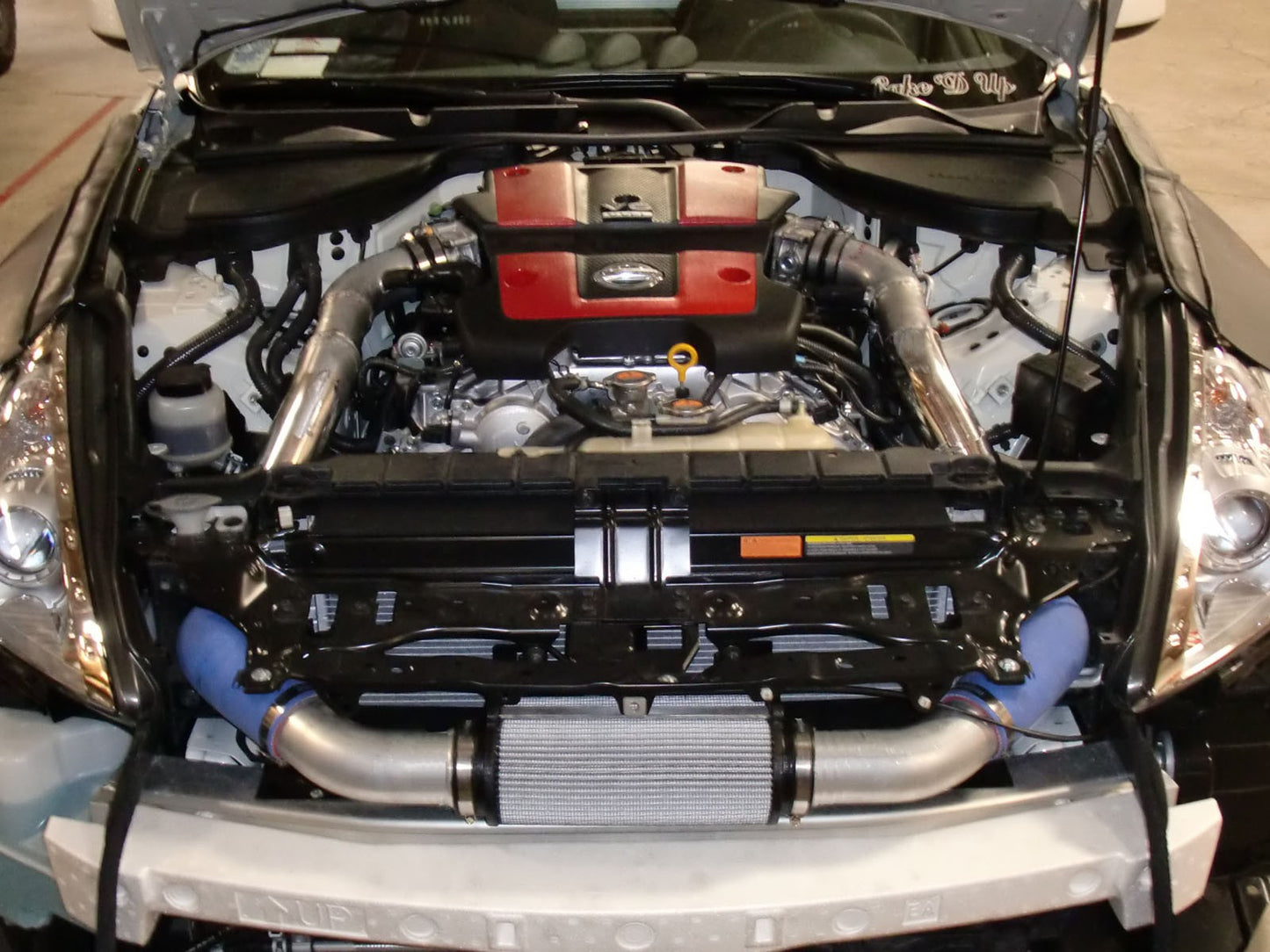 This Takeda performance air intake system uses a unique dual flange filter design engineered to maximize surface area and flow. In recent testing this Takeda "Attack" cold air intake produced 15 horsepower and 16 lbs. x ft. torque, while outflowing the factory intake by 35%. The placement of the unique single air filter specifically designed to fit flawlessly in the area in front of the radiator guarantees a supply of cool, high pressure fresh air for maximum power gains. The Takeda philosophy of "no cutting or drilling" is maintained with this intake system, as flexible high resistance silicone couplings are used to pass through existing openings in the radiator core support. Whether for street or race, this is the ultimate intake system for the 2009-2017 Nissan 370Z V6 3.7L.