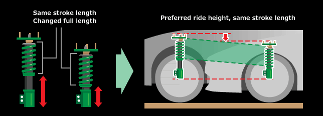 This entails changing the stroking distance to suit your driving conditions or preferences, by e.g. replacing or modifying the shock absorbers' internal components.