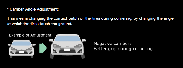 Lower brackets on strut type suspensions come with camber angle adjustment feature. Camber angle can be adjusted by rotating the eccentric washer 180°. This feature can enable camber angle adjustment, even if it can not be adjusted with the upper mounts.
