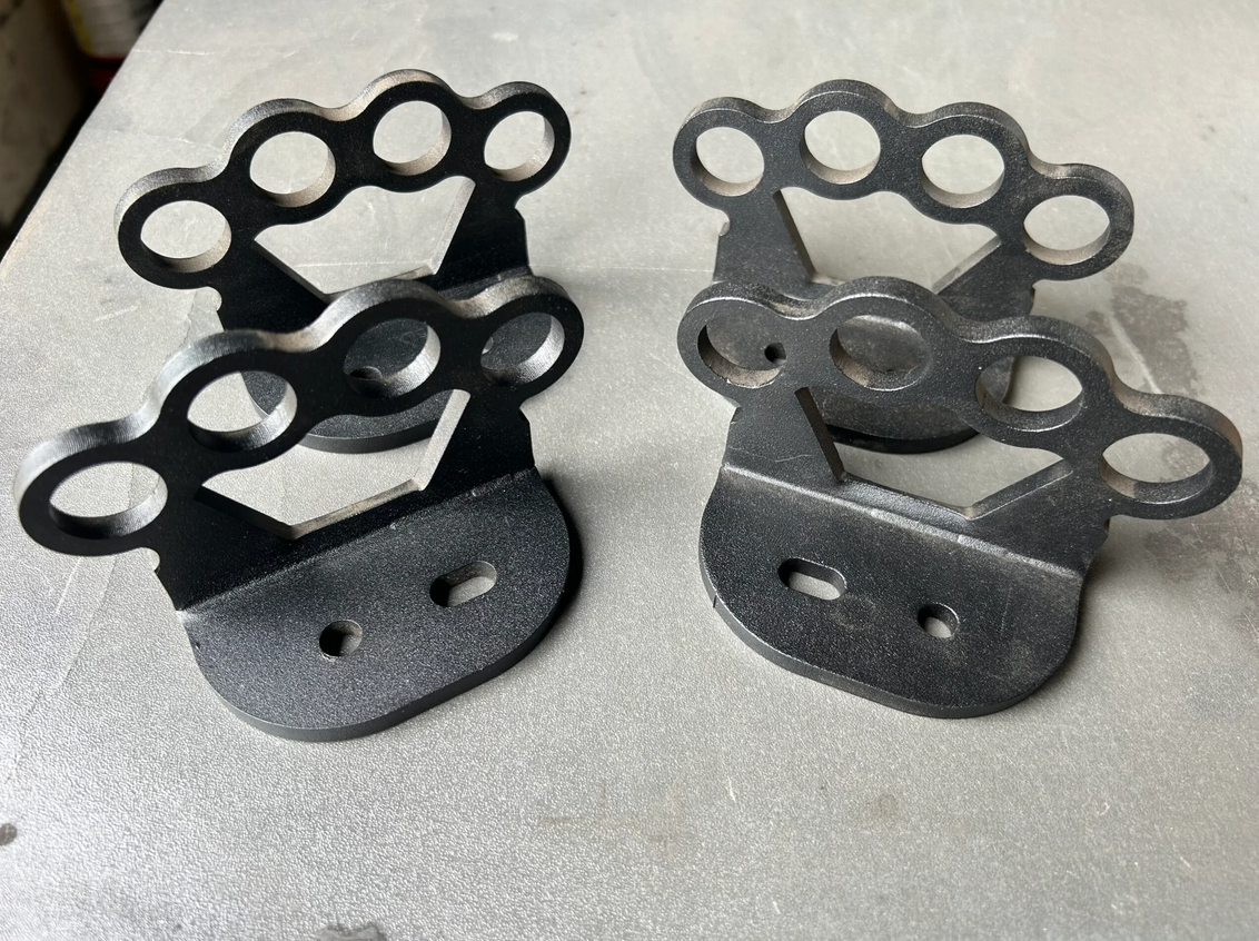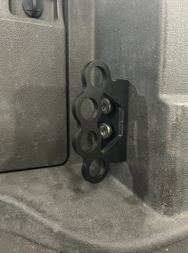Our #202011 kit contains four “Brass Knuckle” style tie downs for the back of your Honda Ridgeline, and are laser cut out of 3/16″ USA-Made steel. These tie downs are then powder coated black to keep them protected from the elements. The unique design of these tie-down anchors allows you to have more anchoring opportunities, allowing for you to secure loads more easily.