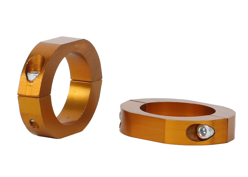 To suit 33mm diameter sway bars - the DIY (Do It Yourself) alloy lateral locking system can be utilized on both factory and more importantly aftermarket sway bars. The locks are easily installed on car with no need to remove the sway bar to install . They are mounted directly next to the sway bar mounting points and prevent shifting or sideways movement of the sway bar under lateral (cornering) loads. This results in improved sway bar effectiveness whilst preventing fouling of the sway bar on near by chassis and steering components.